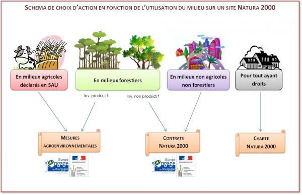 Ils permettent de cadrer les pratiques souhaitables et de valoriser des bons comportements. Ils se basent tous sur le principe du volontariat car le classement d'une zone en Natura 2000 n'impose rien (excepté les évaluations d'incidences). Il existe trois outils:
